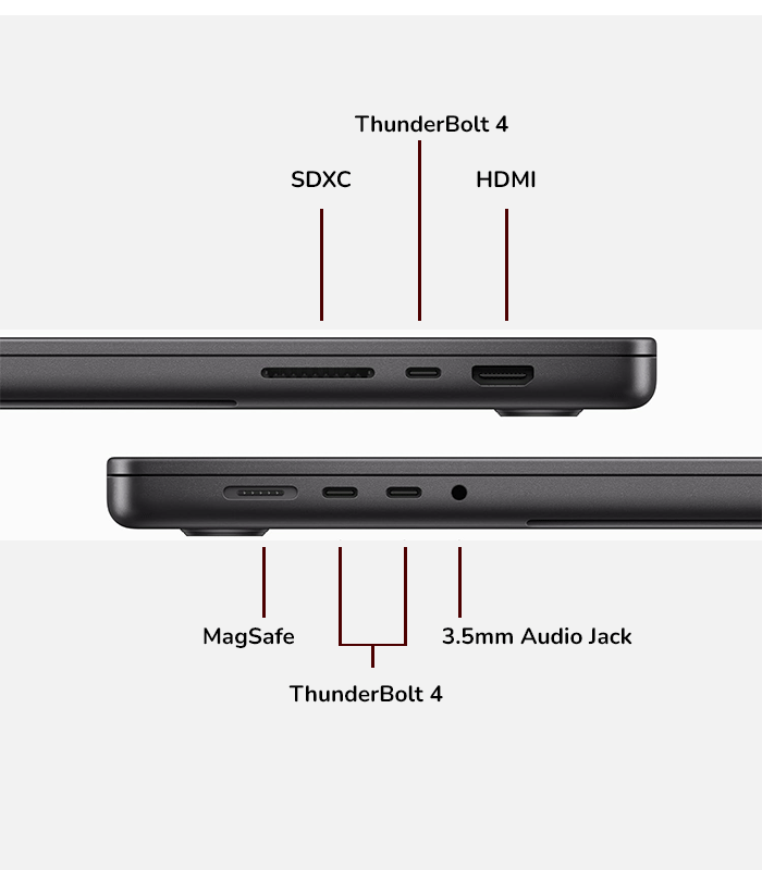 MagSafe 3 port and USB-C (Thunderbolt 4) |